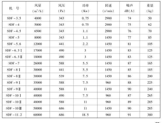 2、示例:SDF-81表示葉輪直徑為800mm的隧道式軸流風(fēng)機;Ⅰ、Ⅱ、Ⅲ表示不同的葉片角度。